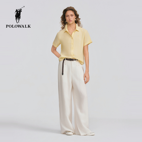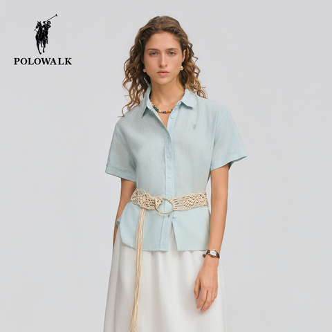 POLOWALK女士短袖衬衫2026夏季新款休闲通勤百搭短袖亚麻混纺衬衫