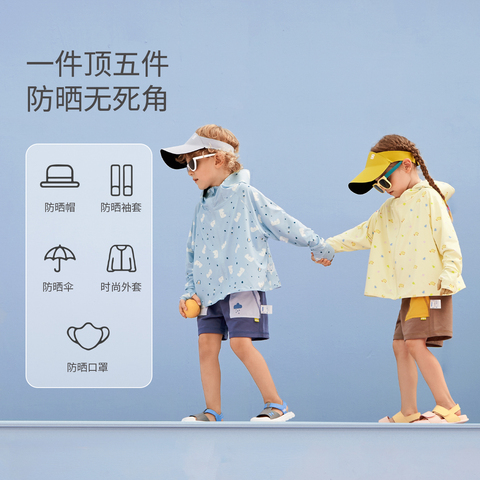 防晒.凉感.速干.遮热四合一!冰丝凉感面料,透气不闷汗,呵护孩子娇嫩肌肤!