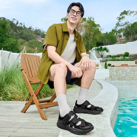 乔丹官方玛丽珍沙滩凉鞋男夏季新款黑色凉拖户外镂空透气休闲鞋子!!