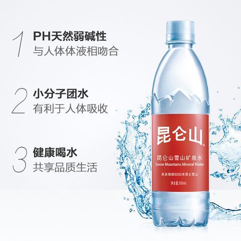 昆仑山饮用天然矿泉水高端雪山水弱碱性品质好水整箱500ml*12瓶