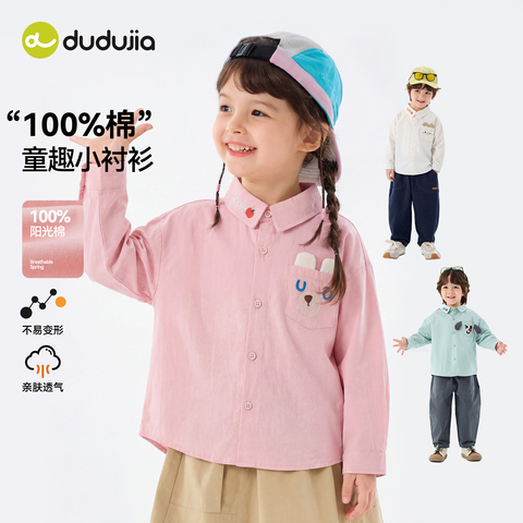 轻柔,不刺激,孩子肌肤的好伙伴!春日来临,换上【嘟嘟家】的男童衬衫,女童也爱不释手!时尚设计,儿童长袖衬衣,潮童必备!