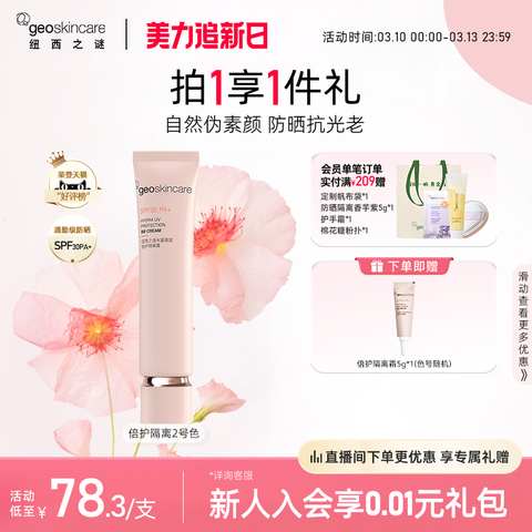 【淘金币抵扣1亓,凑满200-25消费券=24.64亓,下单即赠5g倍护隔离霜】清润倍护配方,提亮肤色不假白,一瓶=防晒+隔离,早八伪素颜必备妈生好皮轻松get【赠运费险】