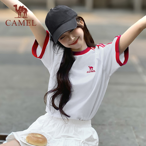 骆驼柔绵T神春夏季棉t恤女短袖圆领情侣复古宽松运动休闲上衣男