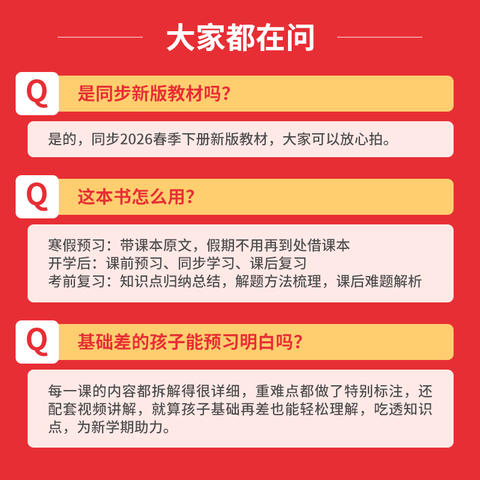 2026春一本课本预习笔记语文数学英语一二三年级四年级五年级六下册上册人教版PEP北师版25秋一本预习笔记同步讲解官方旗舰店 【售价】:¥19.96 【券后】:¥9.96 【优惠券】:¥10 推荐理由:2026春一本课本预习笔记1-6年级语数英任选,字体大,排版清晰,全彩印刷,内容与教材同步,可以提前预习了解,课堂听课更熟悉,方便记忆,让孩子学习快人一步!~ 👉复制这条信息打开【手机淘宝APP】即可领券购买:/