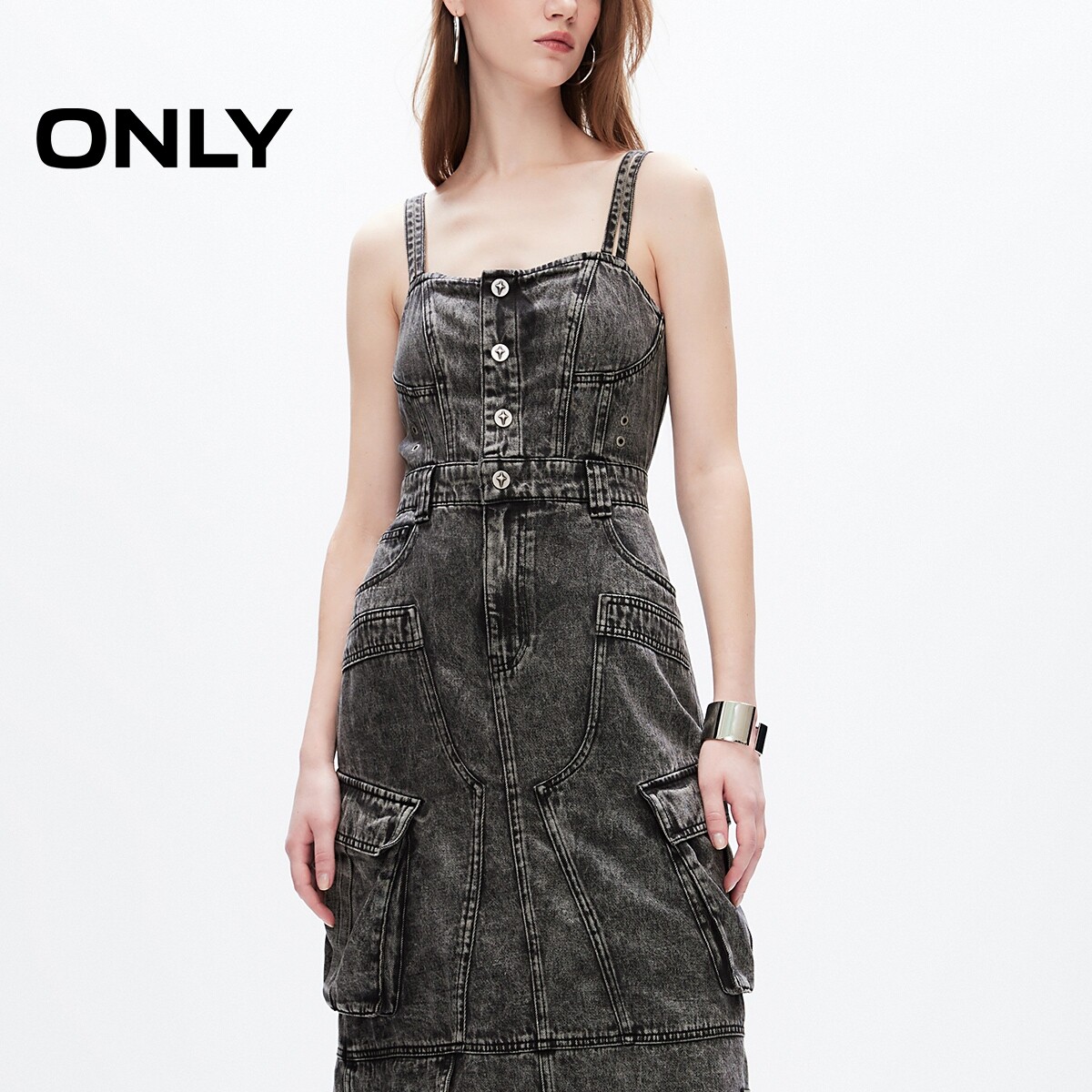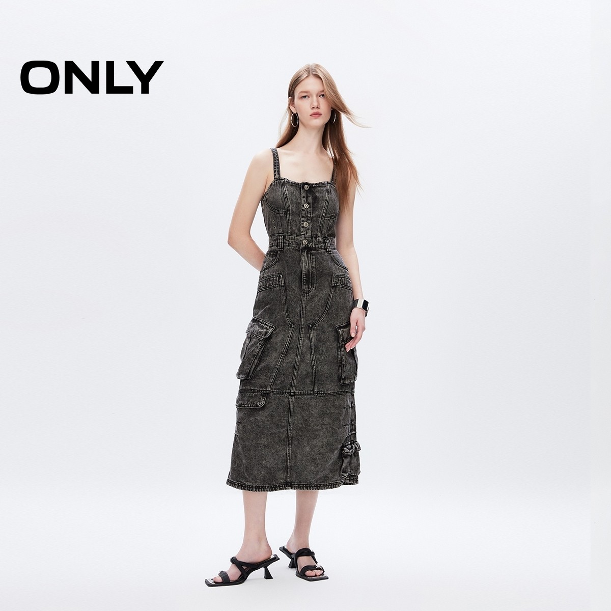中长款吊带牛仔连衣裙ONLY
