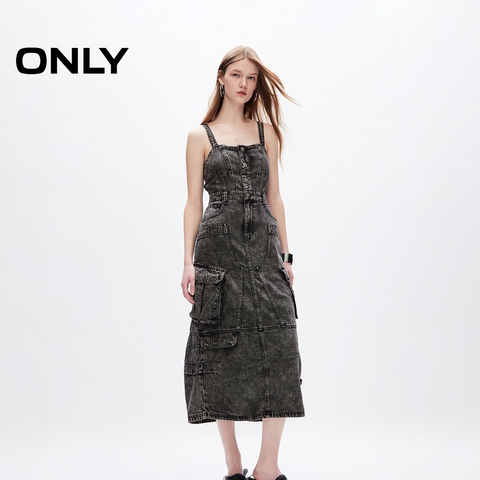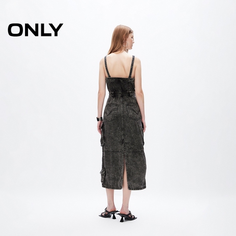 【ONLY奥莱】夏季时尚个性修身中长款吊带牛仔连衣裙女