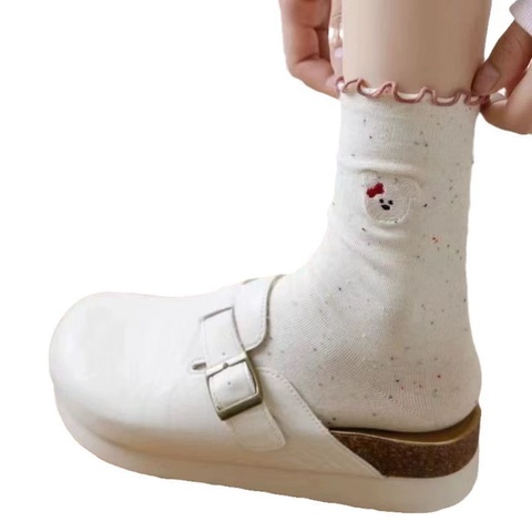 春秋冬新品袜子日系卡通小熊点子纱女中筒袜百搭学院风棉质女长袜