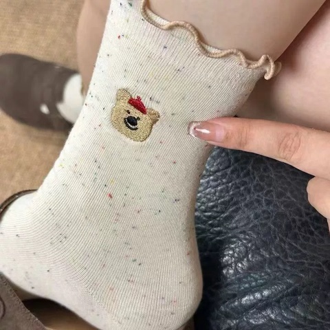 日系卡通小熊点子纱女中筒袜,棉质柔软舒适,学院风百搭,适合春秋冬穿搭,可爱又实用!