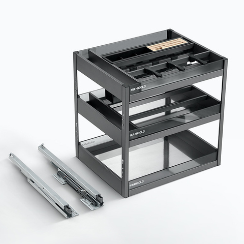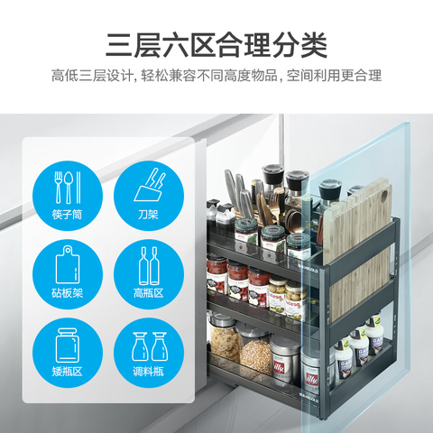 悍高希勒双层橱柜拉篮抽屉式铝合金厨房收纳调味篮内置调料置物架