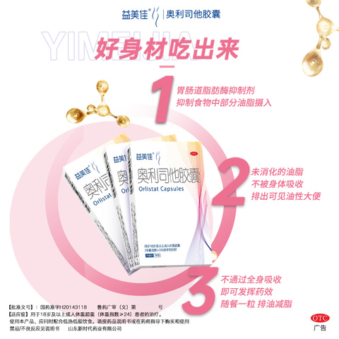【自营】【益美佳】奥利司他胶囊60mg*7粒/盒减肥减脂瘦身燃脂排油 【售价】:¥42.90 【券后】:¥29.90 【优惠券】:¥13 推荐理由:益美佳.奥利司他胶囊〰 60mgx7粒x3盒,[\u1f4b0]29.9 OTC+央.视双认证=靠谱[强] 随餐一粒,排油阻脂yyds 👉复制这条信息打开【手机淘宝APP】即可领券购买:/