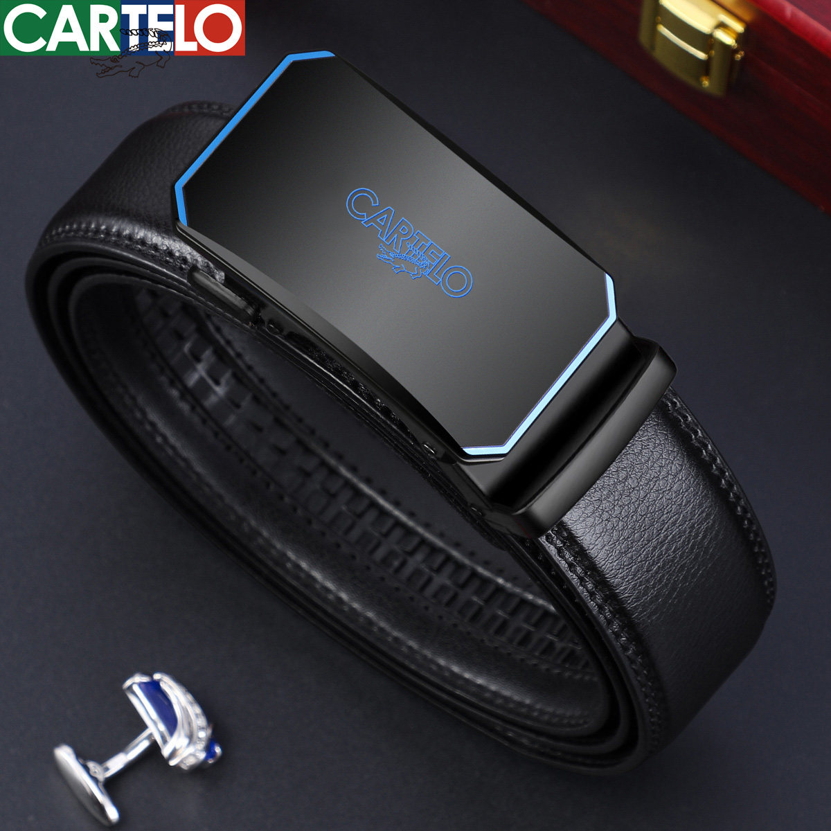 卡帝乐鳄鱼皮带,男士真皮自动扣腰带,纯牛皮材质,商务简约风,适合年轻人群。潮流百搭,品质之选,彰显成熟气质!