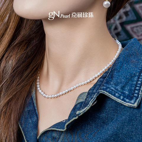 京润珍珠云语18K金项链,4-5mm圆形淡水珍珠,简约小米链设计,百搭又高级!生日送礼首-选,精致感拉满【赠运费险】