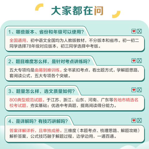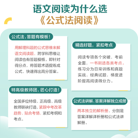 全国通用,800典型题,全5大专项,三维度解析,公式法解语文阅读,紧跟中考改革趋势,贴合考情,精准命题,才能快提分~
