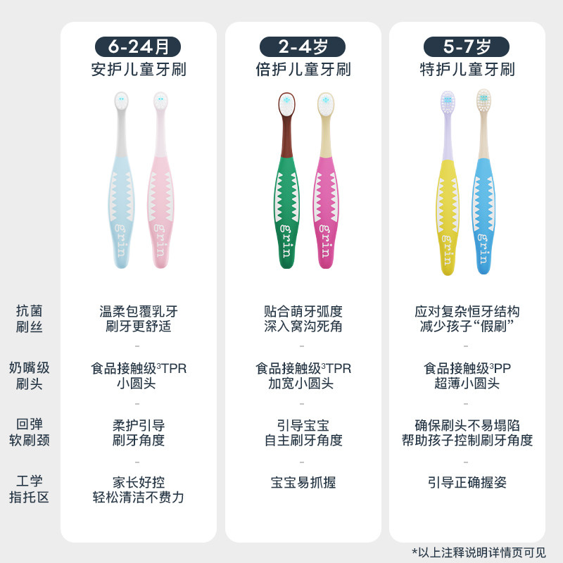 grin儿童分龄软毛牙刷