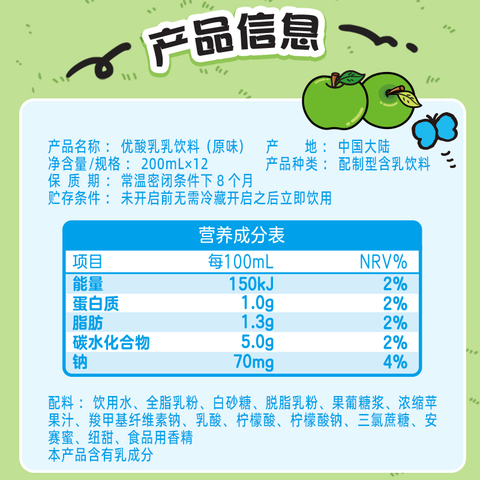 伊利原味优酸乳200ml*12盒