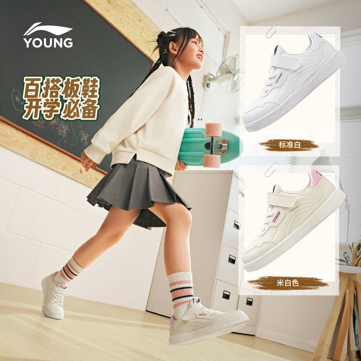 【券后88凑单到手73.56(官方立减26+优惠券54+88vip4.4+消费券,购物金95折后69.89)】2026新款李宁童鞋,圆头设计舒适护脚,低帮滑板鞋时尚百搭,适合小童日常运动穿搭,透气柔软,活力满满!