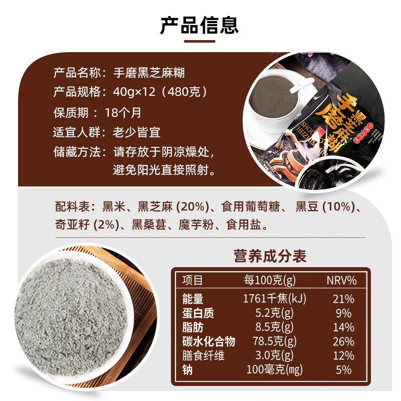 奇亚籽手磨五黑芝麻糊黑桑葚黑豆黑米即食营养早餐独立包装冲泡