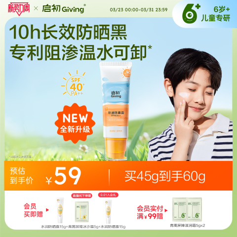 启初儿童防晒霜海边隔离紫外线 【售价】:¥25.80 【券后】:¥15.80 【优惠券】:¥10 推荐理由:【叠淘金币、消费券等10.88到手15g*2防晒,合5.4/瓶!】这款儿童专用防晒霜具备SPF40防晒指数,温和配方专为宝宝娇嫩肌设计,通过多重防晒体系有效阻隔UVA/UVB,减少海边强光下晒红晒伤风险;添加积雪草、红没药醇等舒缓成分,日间防护同时缓解紫外线带来的不适感;质地轻盈水润,成膜快、不泛白、不搓泥,日常通勤或户外游玩都易推开易清洗。 👉复制这条信息打开【手机淘宝APP】即可领券购买:/