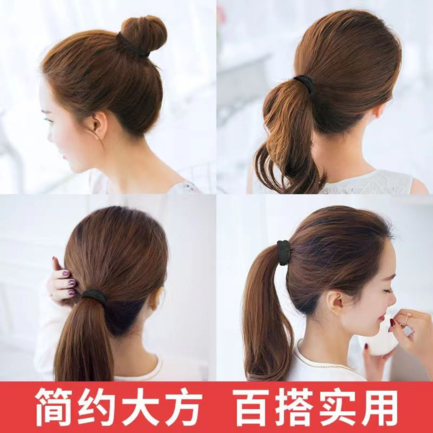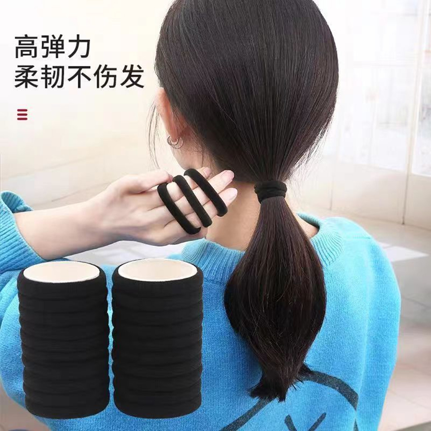 【网红加粗发绳,高弹力耐用!】黑色无接缝设计,扎发不伤发,超大号加厚款。