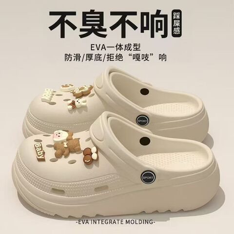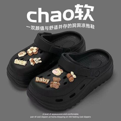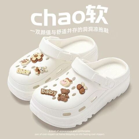 这款洞洞鞋采用轻柔回弹材质,上脚即有舒适“踩屎感”,久穿不累;厚底设计兼顾视觉增高与缓震效果,包头款式更添日常防护;鞋底纹理清晰,湿滑地面也能稳步行走