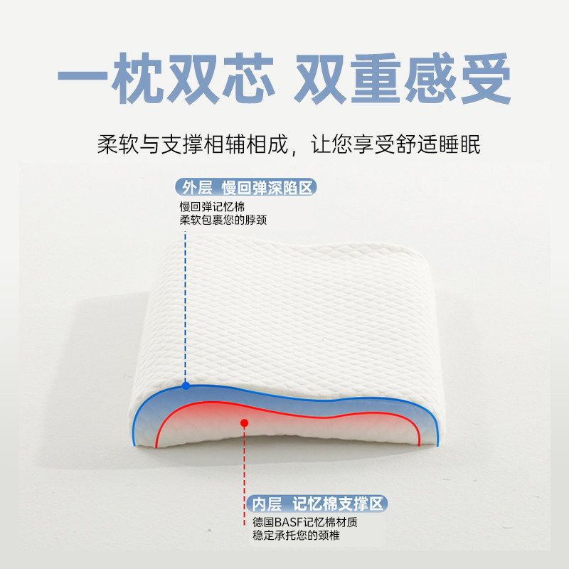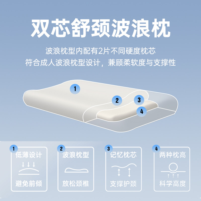 【顺手买】温眠低枕记忆棉枕头双芯舒颈波浪枕颈椎专用矮薄枕