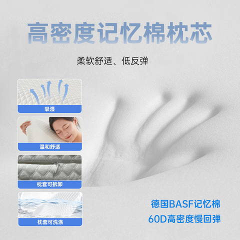 【拍4到手270/54一个】记忆棉材质,拥有良好的记忆功能和慢回弹效果,无论你的头颈怎样移动,它都能自适应贴合,缓解压力点。