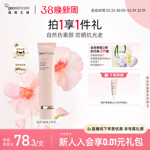 【右上角三个点右下方进淘金币端口抵扣2.67元,下单即赠5g倍护隔离霜】清润倍护配方,提亮肤色不假白,一瓶=防晒+隔离,早八伪素颜必备妈生好皮轻松get【赠运费险】