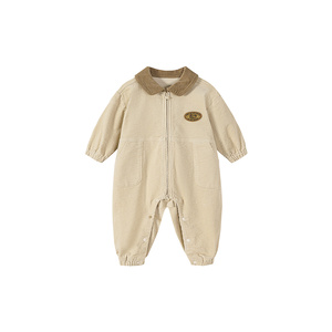迷你巴拉婴童外出连体衣男女宝宝复古工装灯芯绒爬服 年秋季
