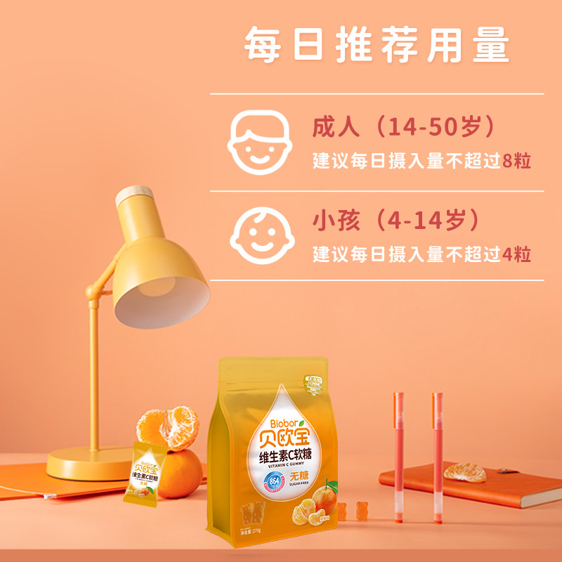 贝欧宝无糖维生素C小熊软糖宝宝营养零食0糖VC糖果水果汁qq软糖