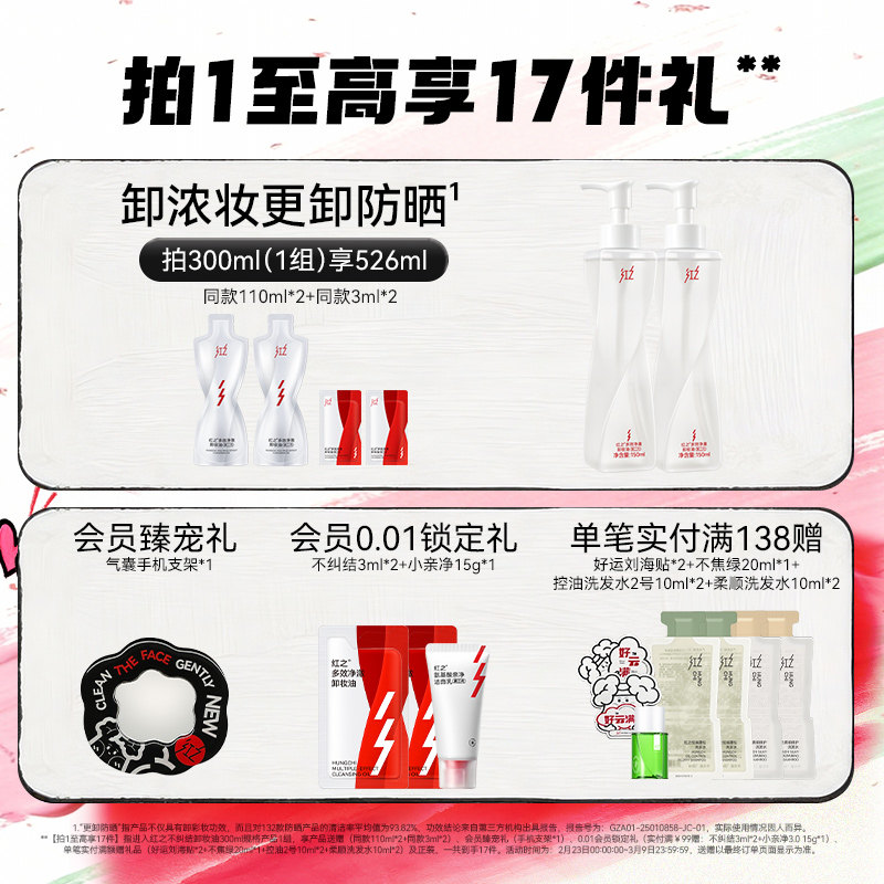 【王源同款】红之不纠结第二代多效净澈卸妆温和清洁卸妆净卸防晒