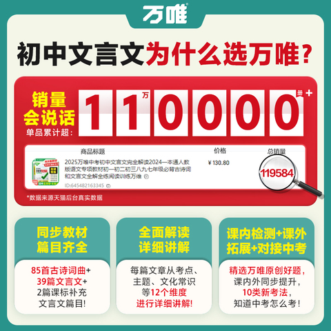 【万唯中考】初中文言文完全解读,同步教材,轻松攻克文言文难题!一书在手,古文阅读不再难,助力中考提分!