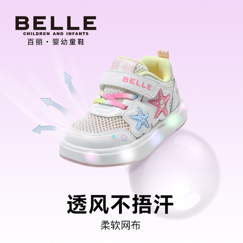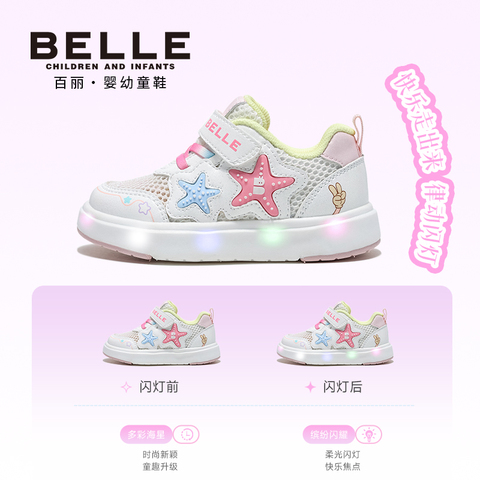 百丽童鞋26春季新品男女童板鞋可爱海星闪灯鞋网面透气休闲宝宝鞋