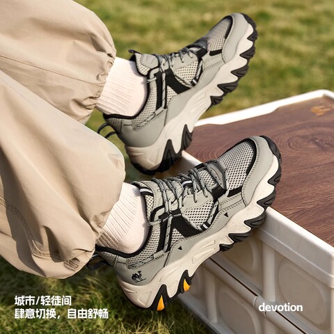 骆驼男鞋休闲运动鞋2026秋季新款慢跑防滑透气网面户外徒步登山鞋。