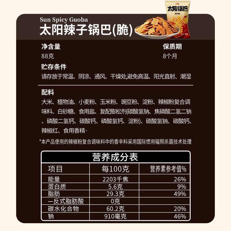 太阳脆锅巴12大袋辣味零食,特辣爆脆口感,童年回忆来袭!追剧必备,越吃越上瘾!【赠运费险】