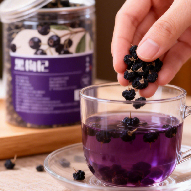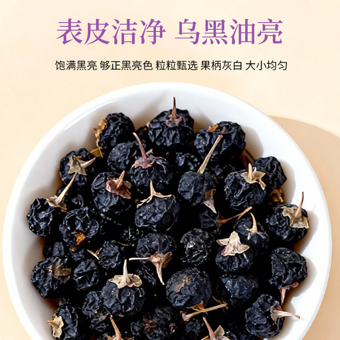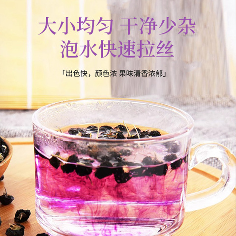 黑枸杞,花青素丰富,果粒饱满,柄短肉厚,无熏硫,0添加,大小均匀,干净少杂,泡水快速拉丝,出色快,颜色浓果味清香浓郁!