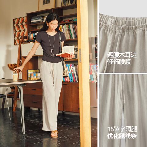 森马木耳边纯色肌理阔腿休闲裤女