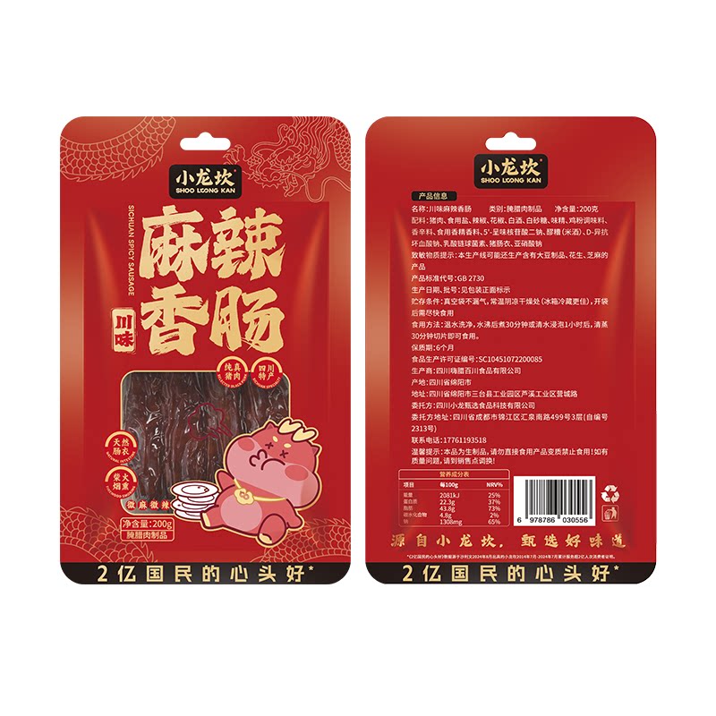【特价】小龙坎川味麻辣香肠,农家烟熏工艺,地道四川风味!2kg装年货优选,腊肉香浓有嚼劲,适合家庭分享或送礼