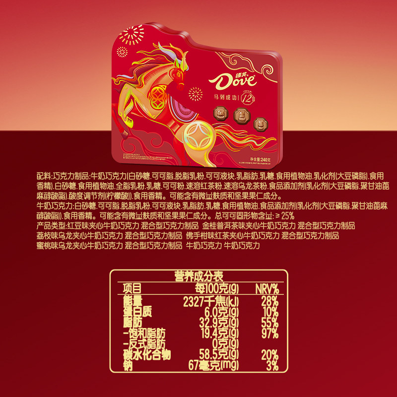 德芙牛奶巧克力12生肖马年礼盒240g*1盒糖果儿童零食品年货送礼物