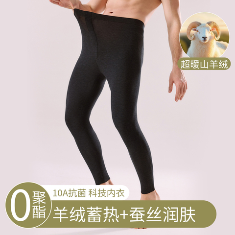 雅鹿男士保暖裤高弹羊绒蚕丝保温打底长裤腈纶发热10A抗菌秋冬季