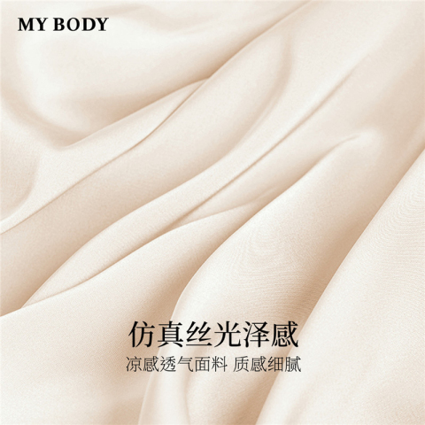 MYBODY商场同款法式吊带睡裙高级感丝滑缎面蕾丝性感露背家居服女
