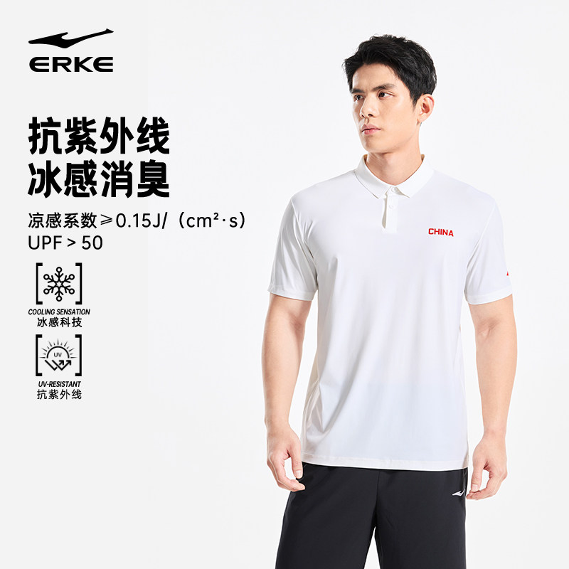 【叠7.95淘金币】 鸿星尔克中国polo衫男夏季新款,冰丝防晒短袖T恤,透气舒适,适合日常运动穿搭。淘金币可抵扣,性价比高!!
