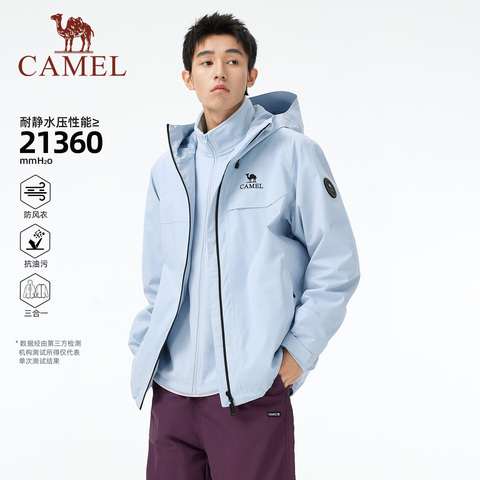 骆驼男装户外冲锋衣徒步三防夹克外套防暴雨三合一内胆登山服秋冬
