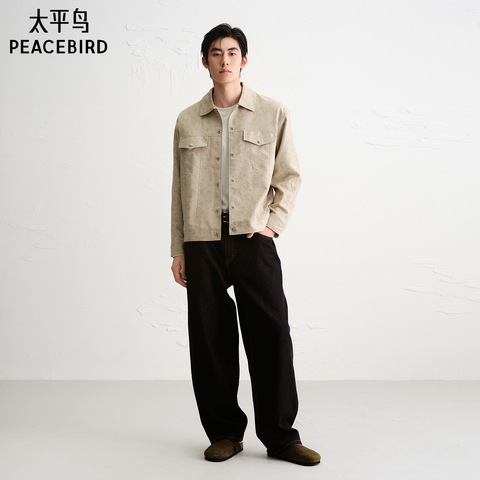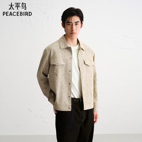 太平鸟男装 老花工装口袋茄克时尚休闲宽松翻领夹克外套男潮流