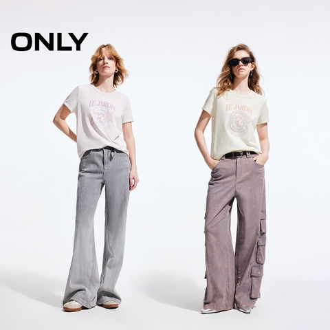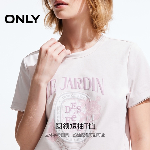 【热销爆款】ONLY2026春季新款纯棉上衣玫瑰印花正肩短袖T恤女