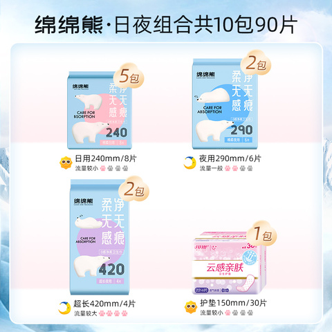 月月舒卫生巾消毒级棉柔透气日夜组合套装90片瞬吸防漏学生姨妈巾