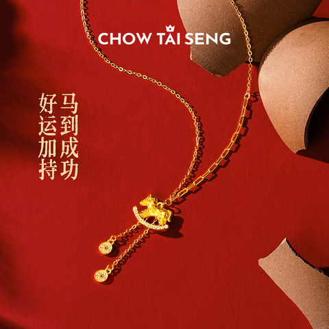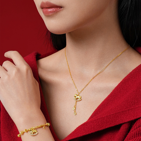 周大生马上有钱项链生肖马纯银吊坠锁骨链本命马年送女友生日礼物