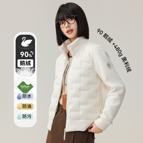 【直播闪降】雪中飞2026年男女同款短款排骨羽绒外套摇粒绒拼接
