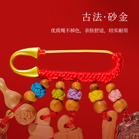 观音山宝宝平安防压京醒狮别针,桃木雕刻,寓意吉祥辟邪,适合儿童外出佩戴。红绳搭配精致别针,可爱又实用,守护宝宝平安成长!
