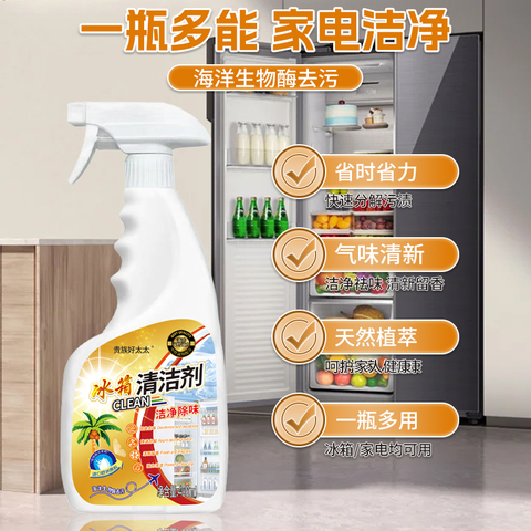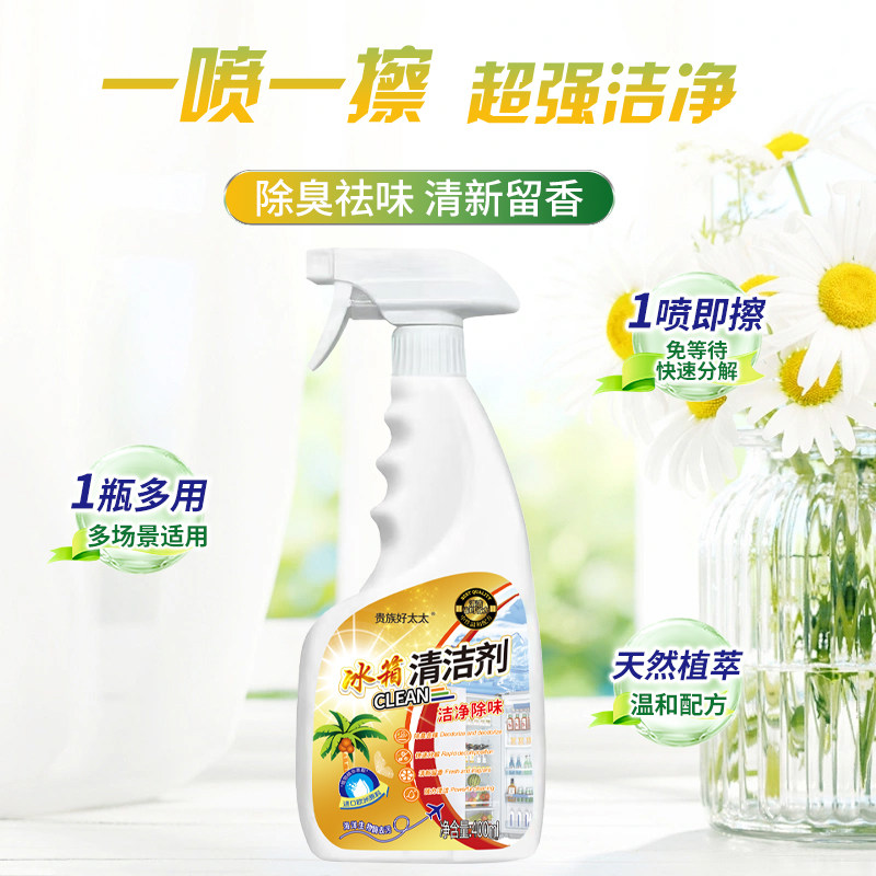 贵族好太太冰箱清洁剂,高效除异味、除垢、除霉,清新持久。一瓶多用,轻松解决冰箱清洁难题,让食材更安心!