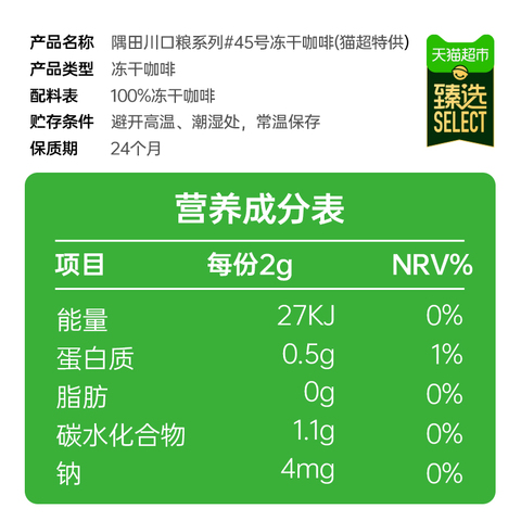 臻选隅田川#45速溶冻干即溶美式黑咖啡200g*1瓶